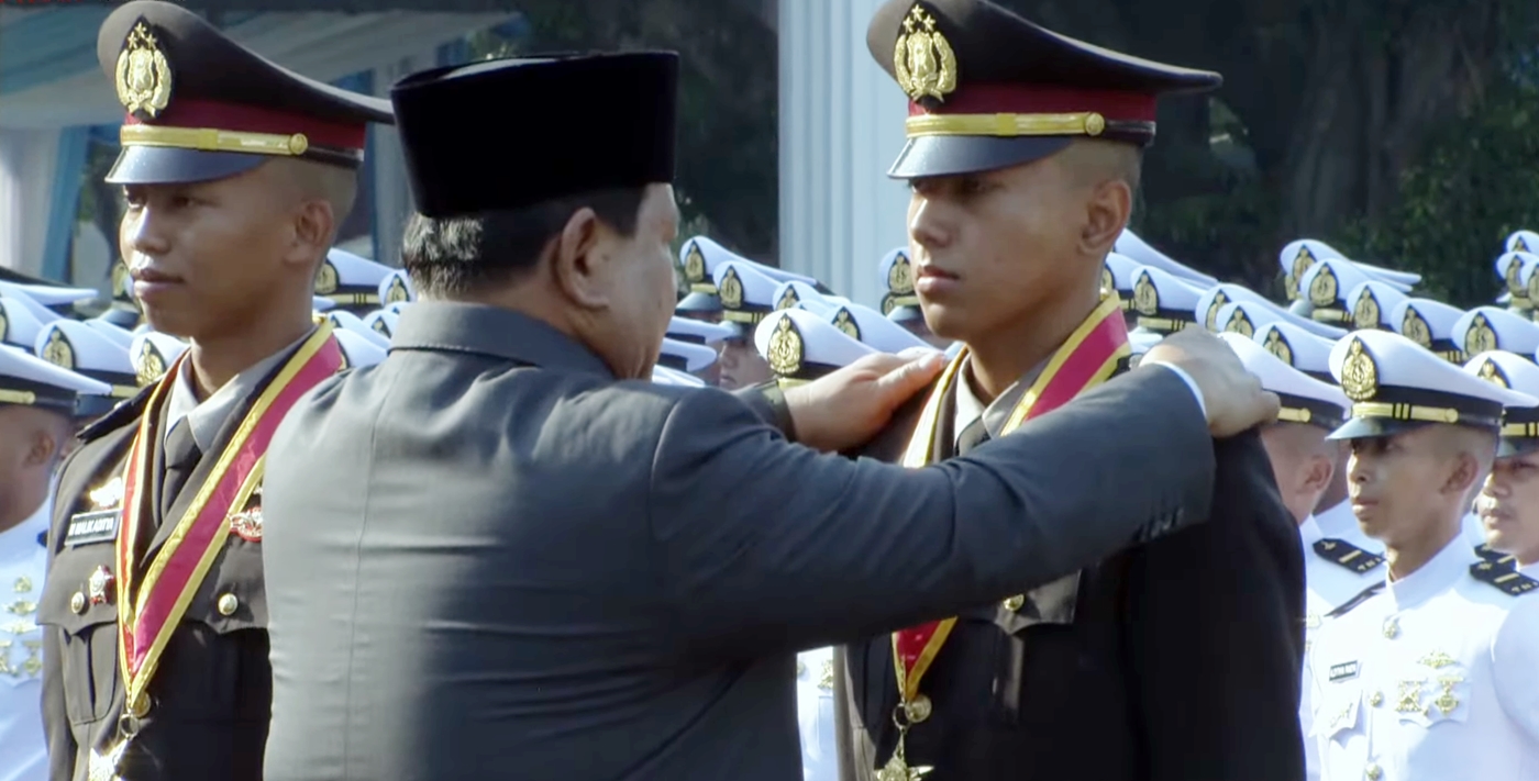 Sementara itu, saat prosesi pengambilan sumpah, perwakilan perwira yang berdiri tepat di depan Presiden Prabowo, yaitu Muhazrul Nandar Husyain Nahumarury (TNI AD), Aditya Yuswanto Putra (TNI AL), Sebastianus Prayoga Bimantoro (TNI AU), I Dewa Agung Ayu Alamanda (Polri), dan Medi Ananta Putra (TNI AL).