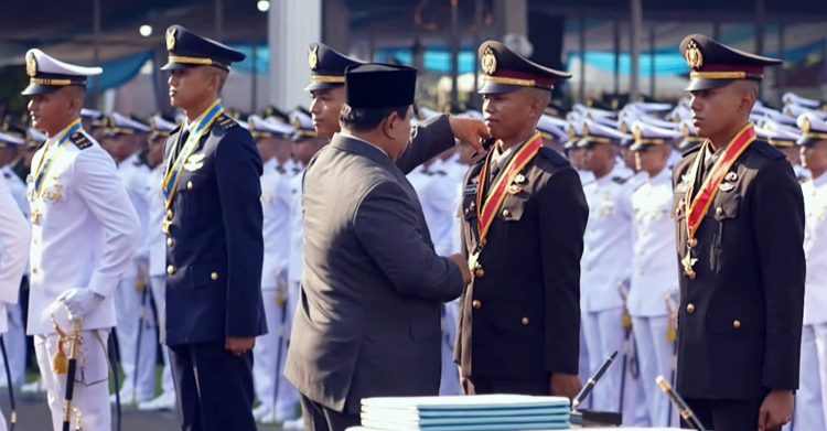 Dalam prosesi ini, Presiden Prabowo sekaligus memimpin pengambilan sumpah jabatan para perwira baru.
