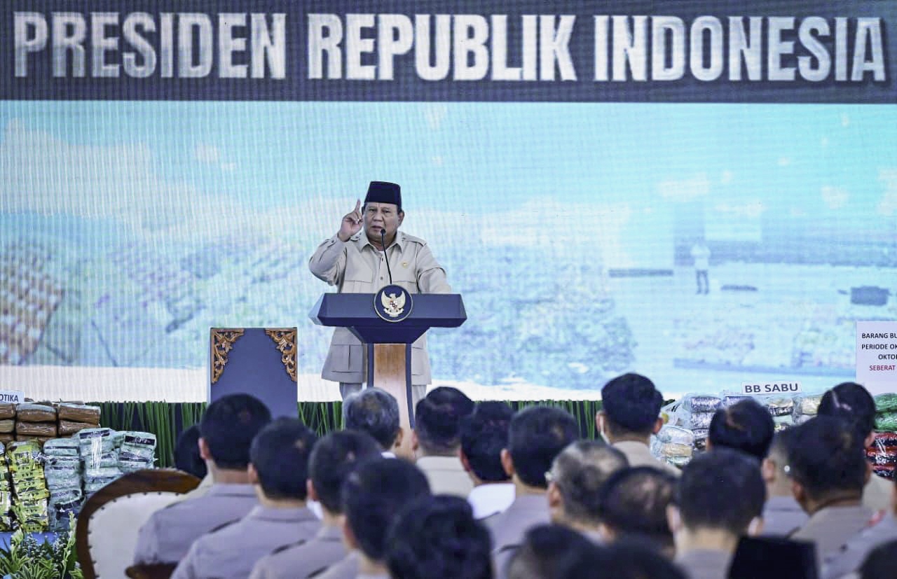 Dalam sambutannya, Presiden Prabowo menyampaikan apresiasi tinggi atas keberhasilan Polri mengungkap jaringan peredaran narkoba di berbagai wilayah Indonesia sepanjang Oktober 2024-Oktober 2025.