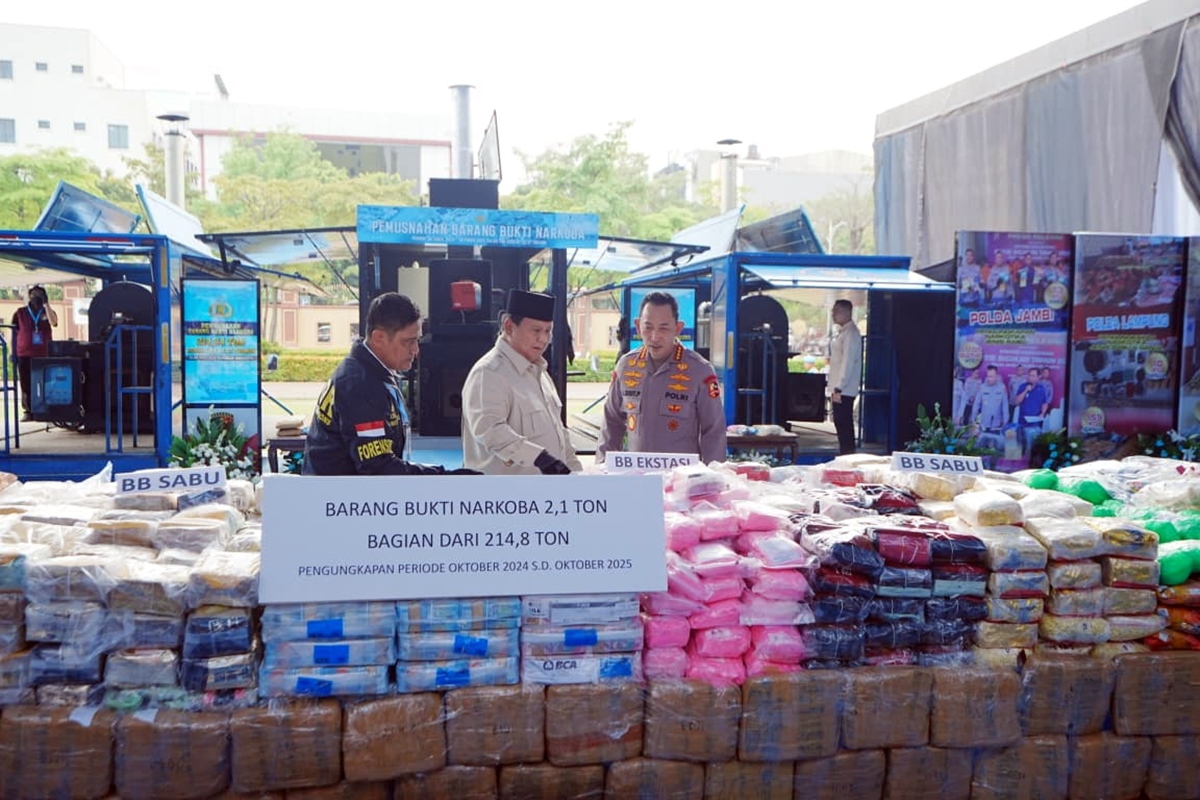 Dari jumlah total tersebut, 212,7 ton telah dimusnahkan sebelumnya, sementara 2,1 ton sisanya dimusnahkan langsung oleh Presiden Prabowo dalam kegiatan hari ini.