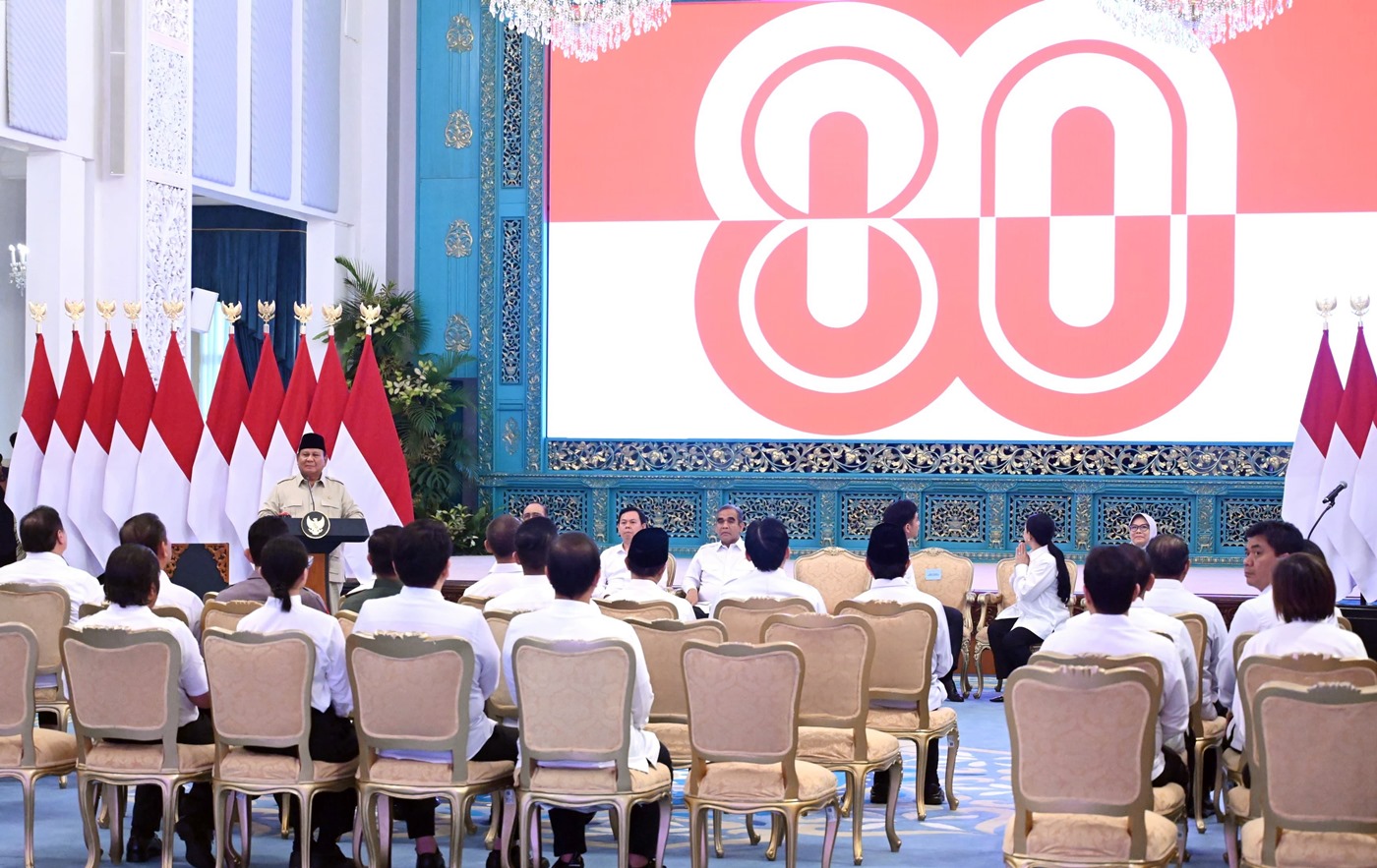 Presiden Prabowo Subianto meluncurkan logo dan tema Hari Ulang Tahun (HUT) ke-80 Kemerdekaan Republik Indonesia yang digelar di Istana Negara, Jakarta, Rabu (23/07/2025). dok Setkab