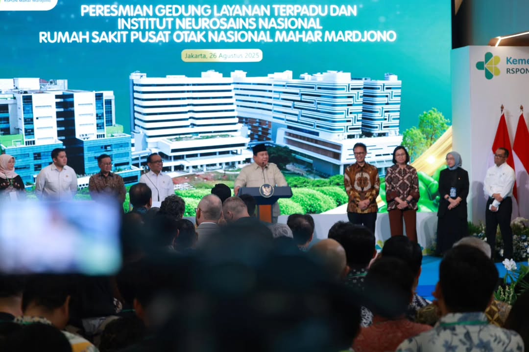 Sorot Merah Putih, Jakarta – Presiden Prabowo Subianto meresmikan Gedung Layanan Terpadu dan Institut Neurosains Nasional di Rumah Sakit Pusat Otak Nasional (RSPON) Mahar Mardjono, Jakarta, Selasa (26/8/2025).
